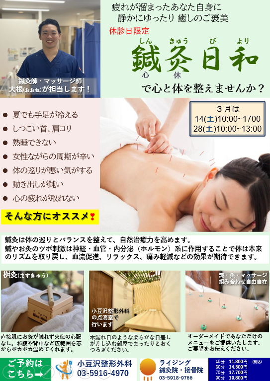 3月はライジング、小豆沢整形外科ともに4連休が入っていますので