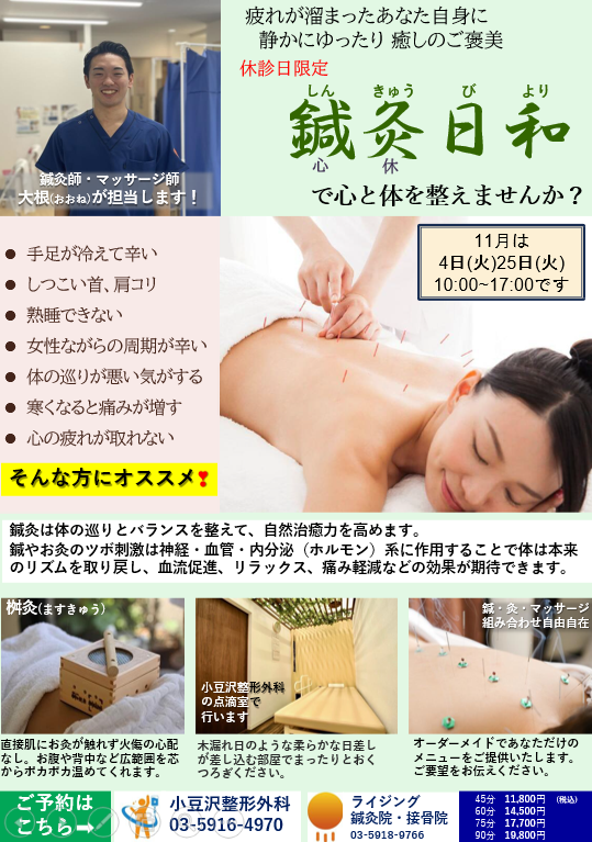 11月3(月)24(月)は祝日ですが営業日です。4(火)25(火)が休業日となっておりますのでお気を付けください。